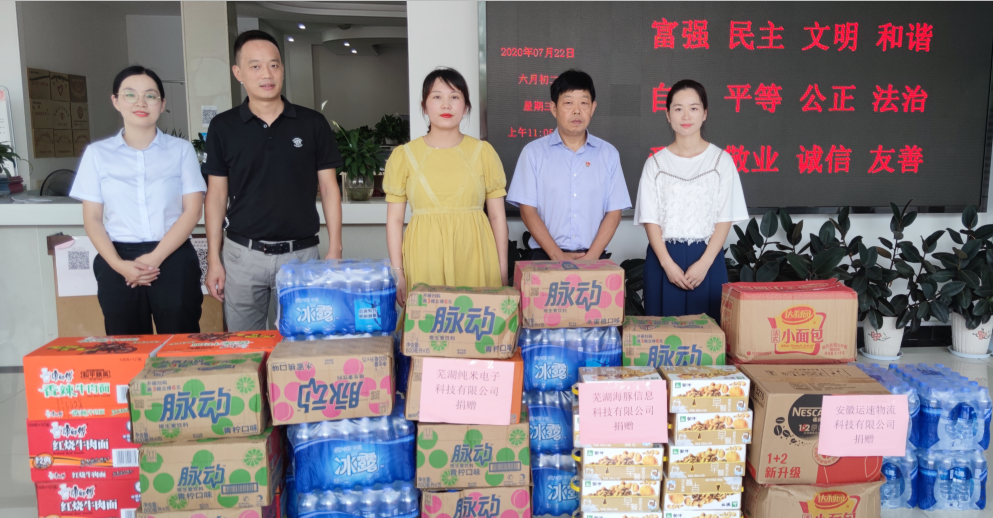 汛情依舊嚴峻,形勢不容樂觀,園區(qū)企業(yè)紛紛伸出援手,咨詢捐贈事宜,7月22日,園區(qū)再次組織蕪湖純米電子科技有限公司、蕪湖海豚信息科技有限公司、安徽運速物流科技有限公司三家企業(yè)前往大礱坊街道捐獻保障物資50余件,兩次捐獻物資200余件,支援街道抗洪防汛,為一線提供物資保障。